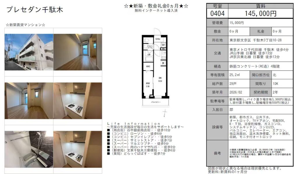 【スタッフからの一言】 人気の文京区エリアで、新築かつ初期費用を抑えたい方にぴったりの物件です。 周辺は静かな住宅街でありながら、谷根千エリアの散策も楽しめる好立地。 内見のご希望や詳細については、お気軽にお問い合わせください。