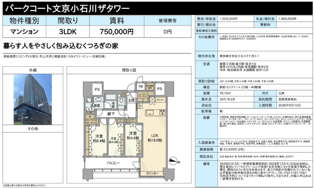 - 入居予定: 2026年3月中旬